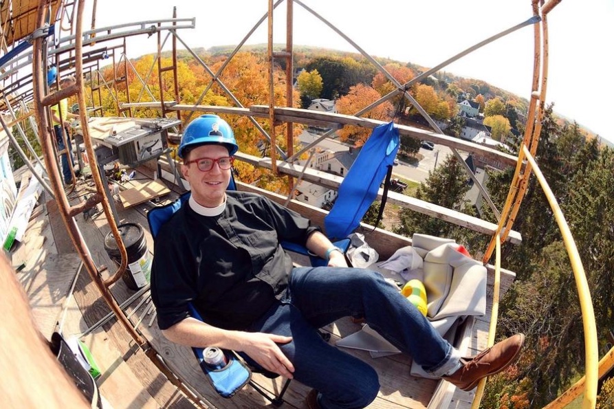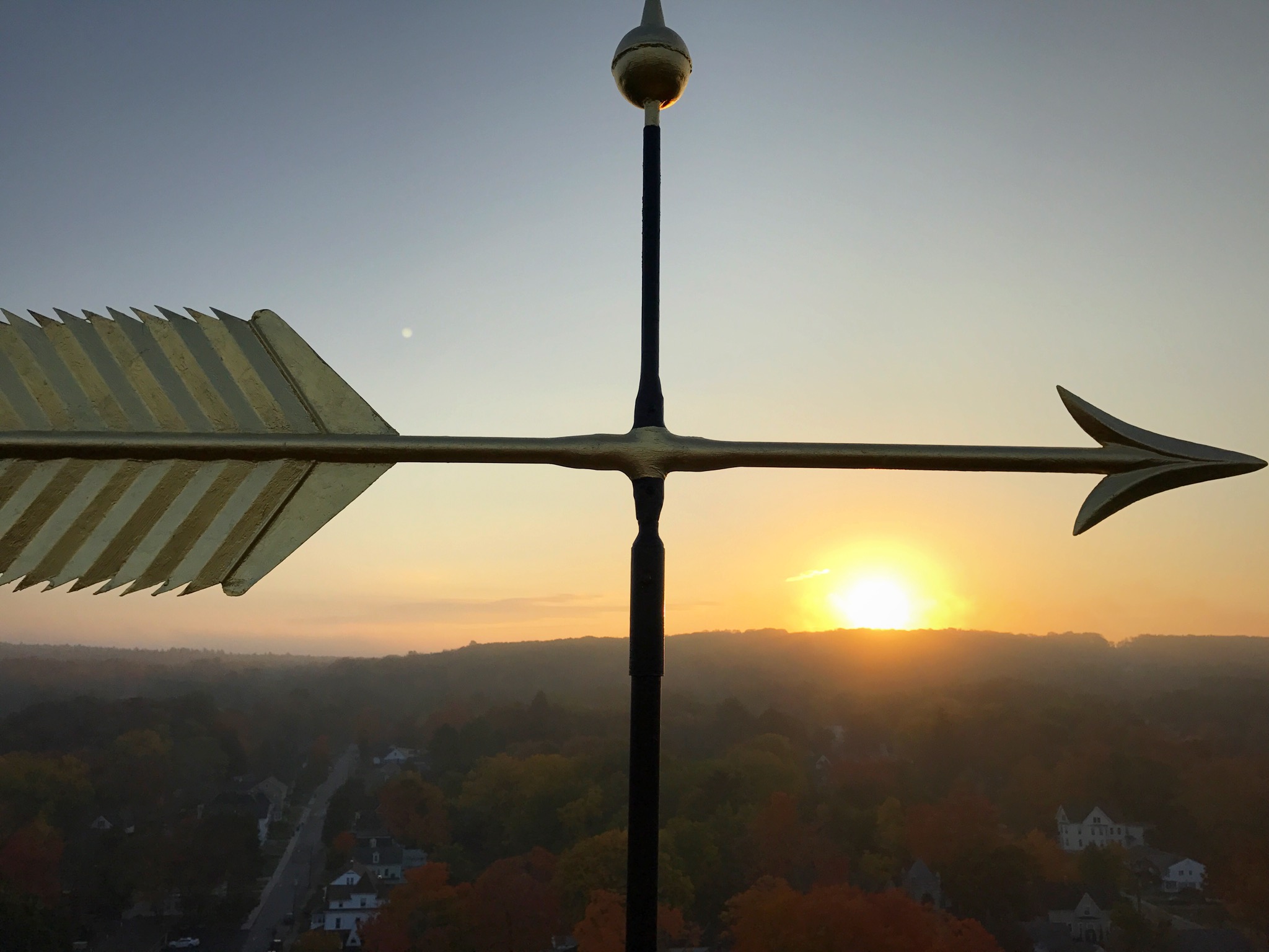 I had climbed the scaffolding that hugs Westfield’s iconic steeple a dozen or times before, but climbing it during the early hours of October 19th I discovered my legs had turned to the same Jell-O that they were the very first time I scaled our tower. Unlike those other trips, so much depended on this one. As I climbed, I looked down to wave. I forced a smile then looked up at the next set of stairs and kept going. “Here goes nothing,” I thought to myself.