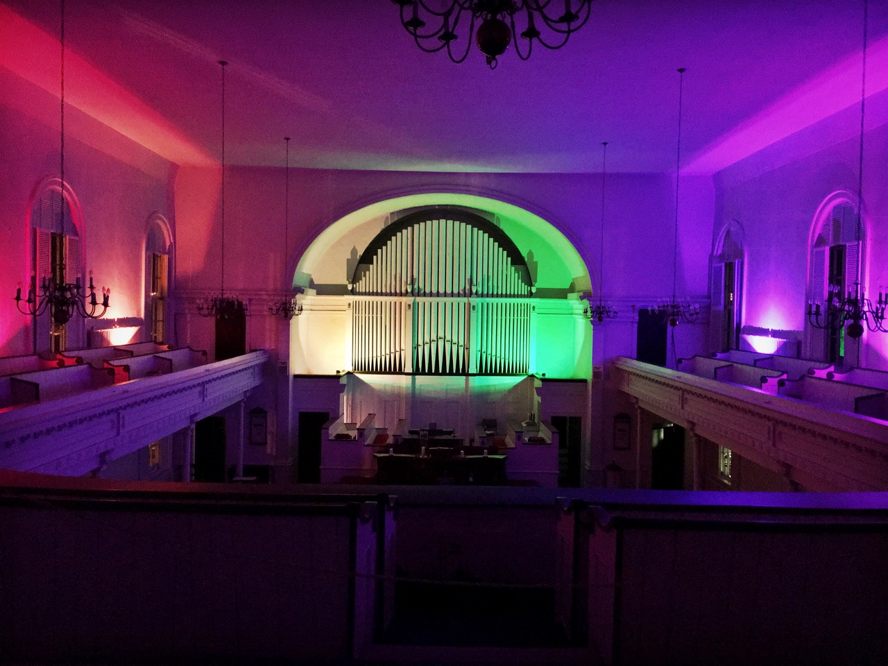 Things are going splendidly at Westfield. We’re growing–over 100 almost every week, 130 just this morning. I’m not sure what we’re doing differently, but we’re certainly connecting to folks. And it’s great. What a joy to be part of a place that’s so vital and kind and filled with love. And we just installed these awesome lights that we can change to 16 colors with a remote!