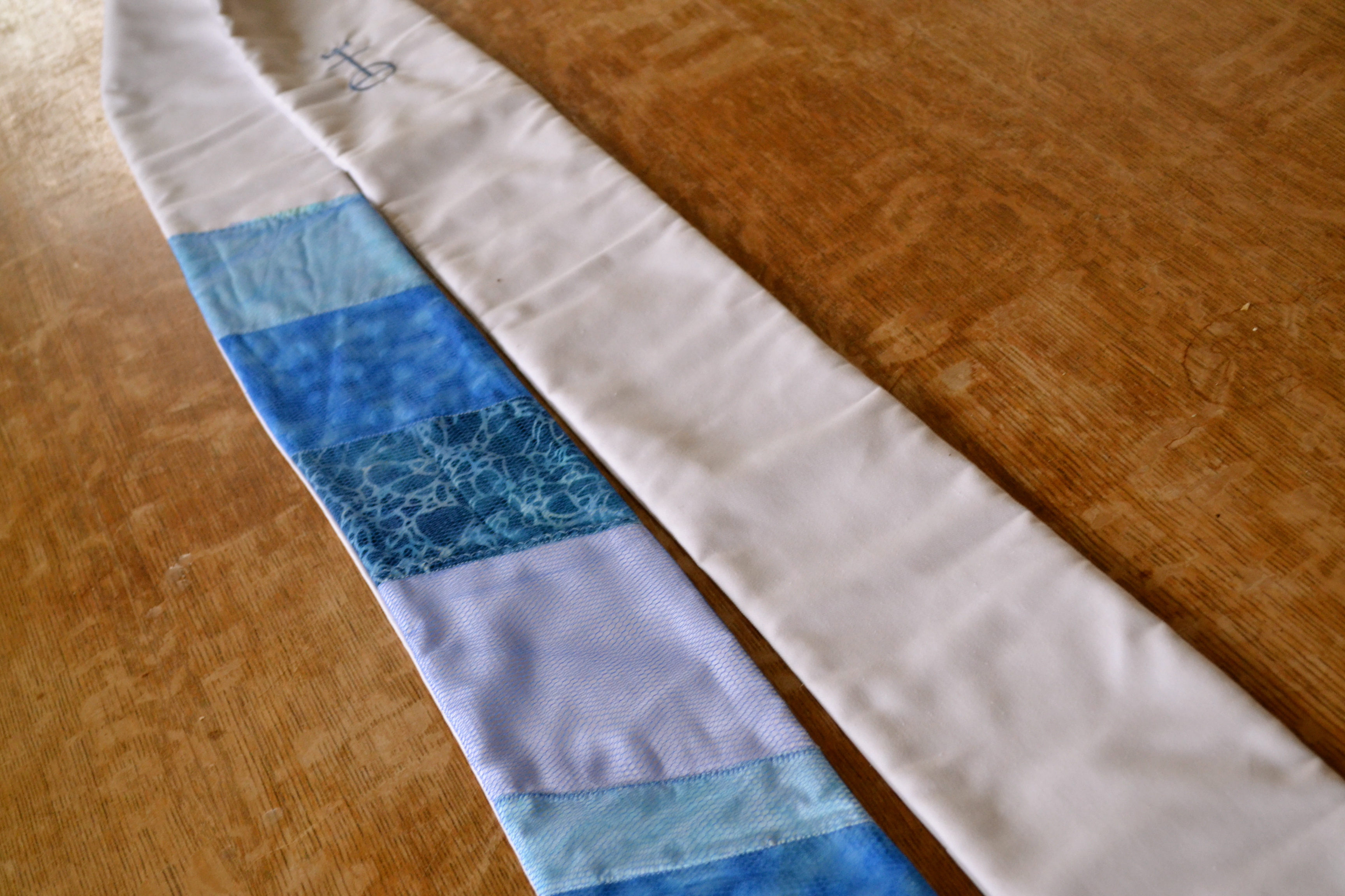 I love stoles. Fact. I like all kinds: patterned ones, painted ones, even be-tasseled ones are growing on me. But the one’s I like the most are ones with quilted or pieced designs–ones that have texture and in their own way, tell a story. I won’t lie–I also like longer ones that fit my taller build.