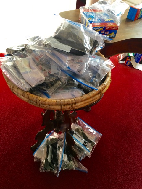 Through it all, we are called to serve. I bought a bunch of socks at BJs, some gallon storage bags, and a ton of bandaids (although, as it turns out–not enough!) Our action was a prayer in itself. Here’s how the instruction card read: